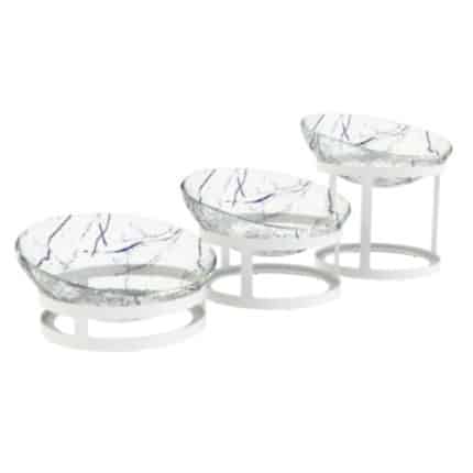 BUFFET SET OF 3 RISERS WITH BOWLS 25CM COLOR MARBLE VEINS BLUE – BY ORDER