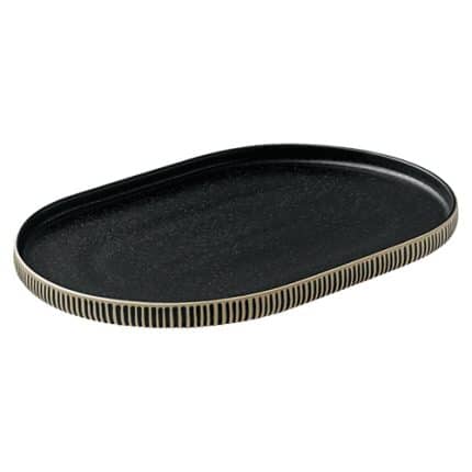 BY ORDER NARA RELIEF BLACK AND WHITE PLATTER OVAL COUP 30X20X2.4CM PLAYGROUND