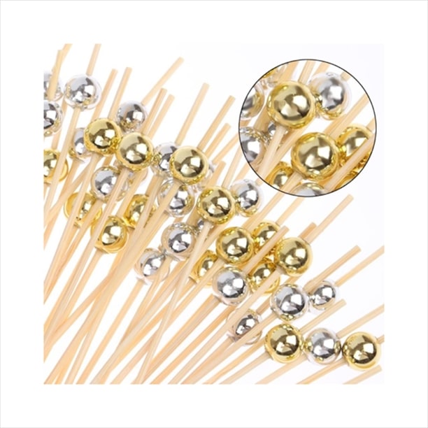 BAMBOO PICK GOLD SILVER SHINNY BALL 12CM 1X100 GTSA